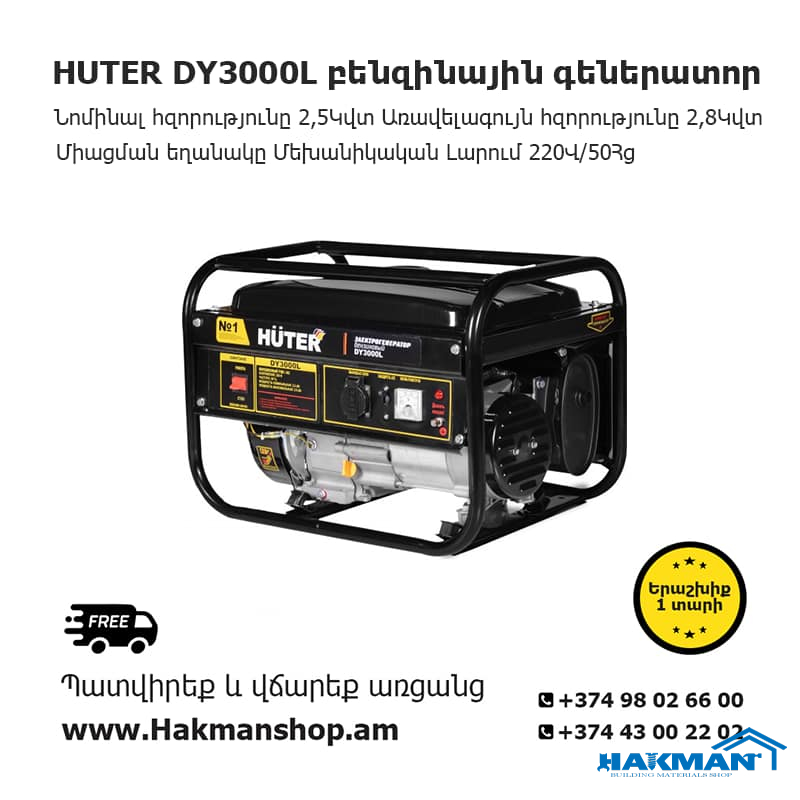 HUTER DY 3000L Բենզինային գեներատոր 2800 Վտ ( Բենզինային գեներատոր 2800 Վտ)