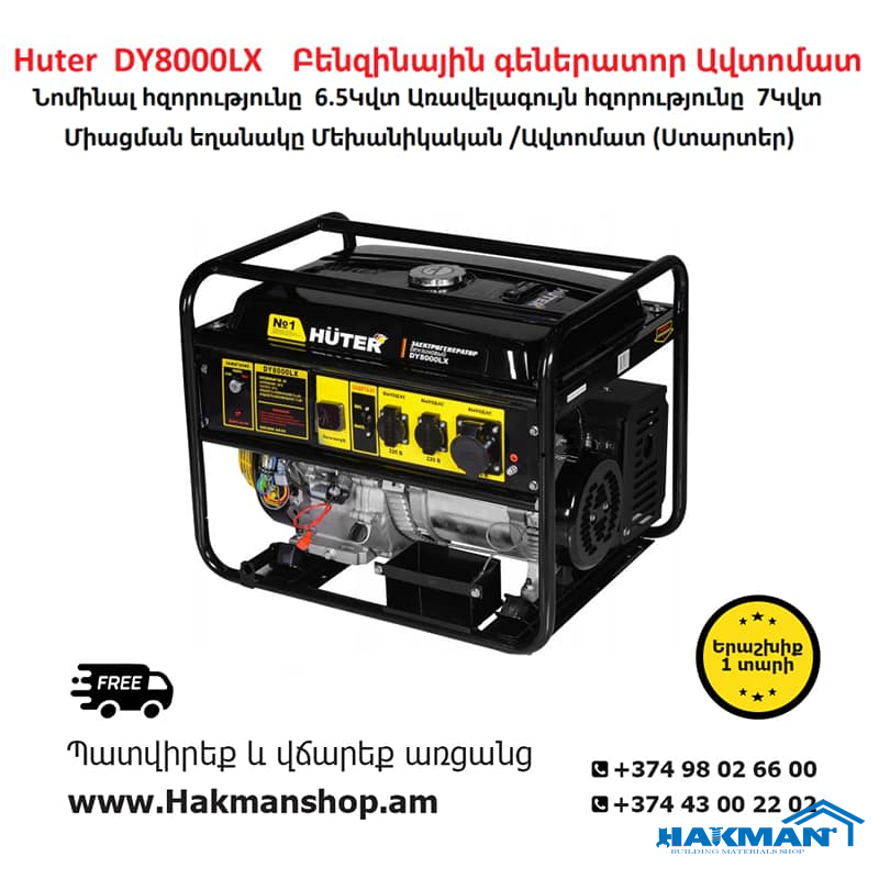 Huter DY8000LX Բենզինային գեներատոր 7000 Վտ (Ստարտեր) ( Բենզինային գեներատոր )