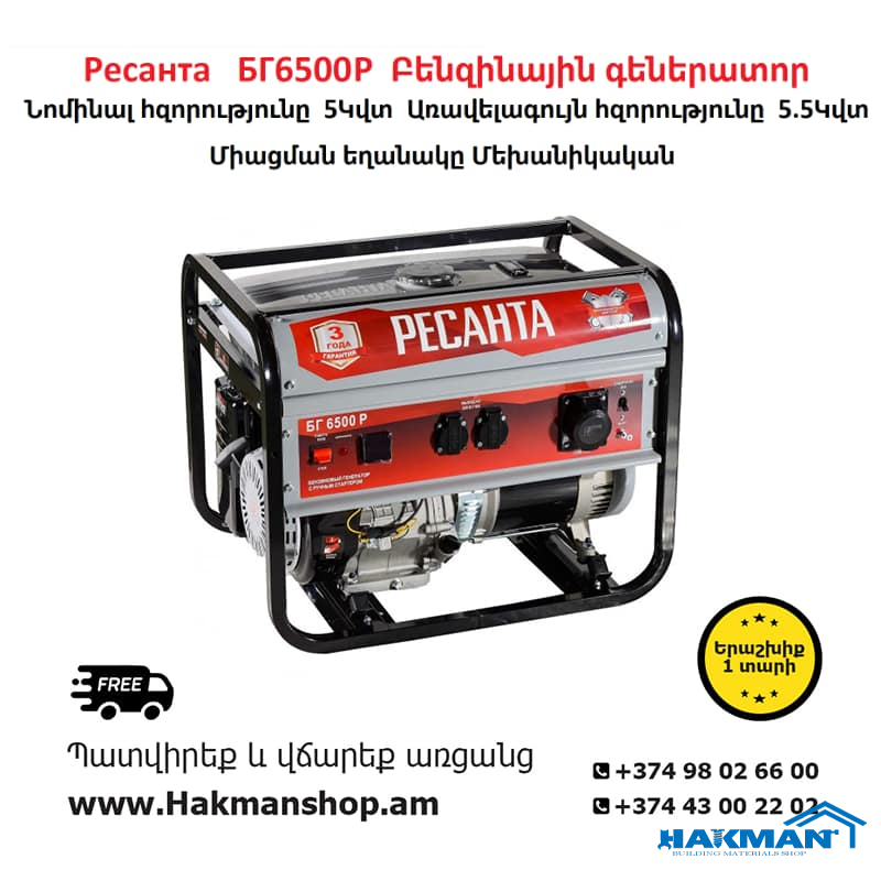 РЕСАНТА БГ6500Р Բենզինային գեներատոր 5500 Վտ ( Բենզինային գեներատոր )
