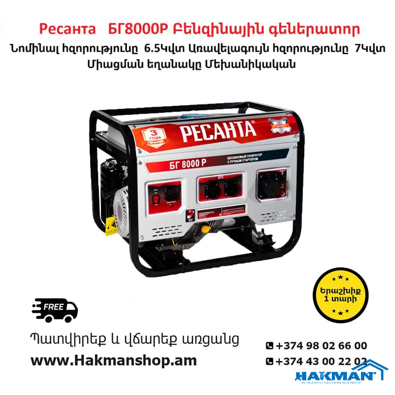 Ресанта БГ8000Р Բենզինային գեներատոր 7000 Վտ (Բենզինային գեներատոր)