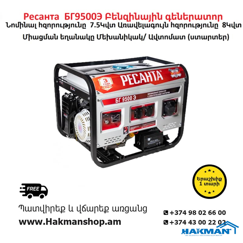 Ресанта БГ9500Э Բենզինային գեներատոր 8000 Վտ (Ստարտեր) (Բենզինային գեներատոր)