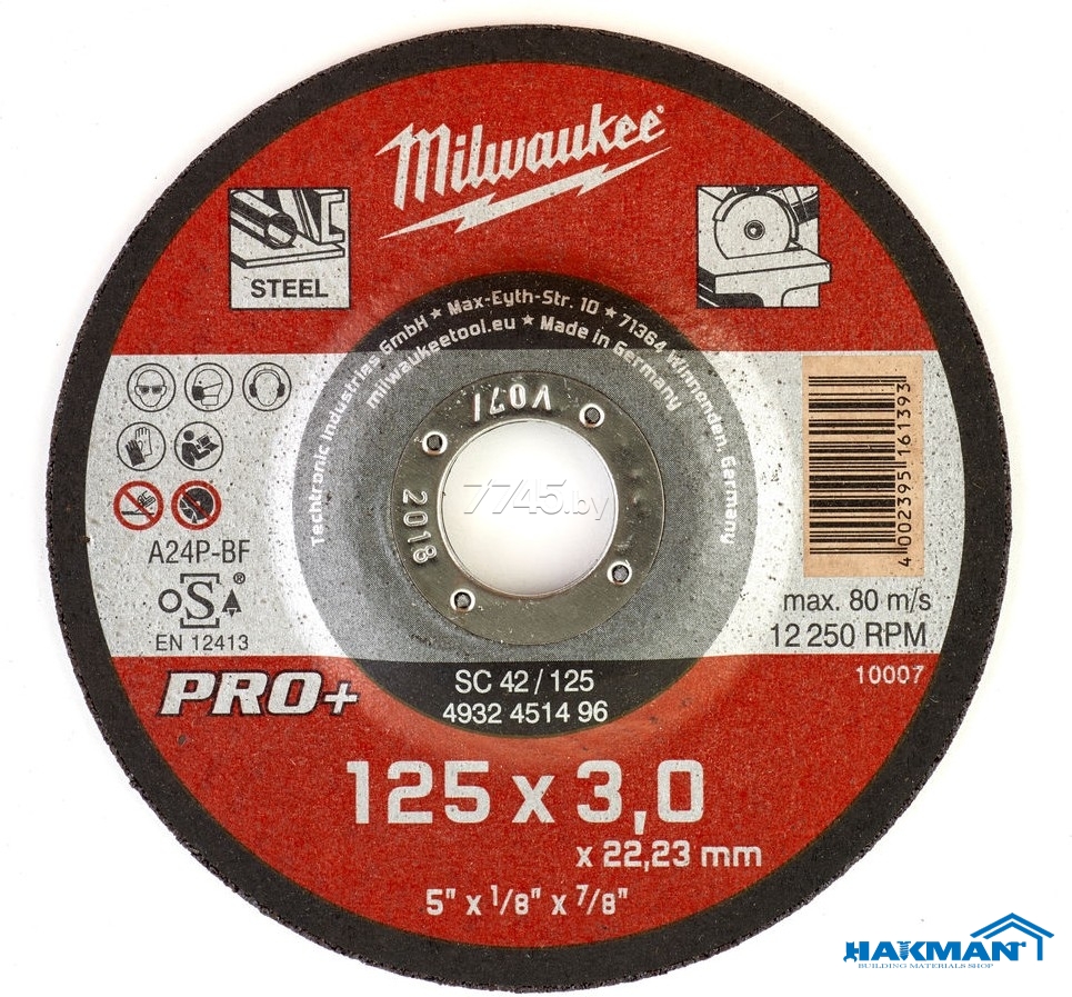 ОТРЕЗНОЙ ДИСК ПО МЕТАЛЛУ MILWAUKEE 125 X 3 X 22.23 ММ